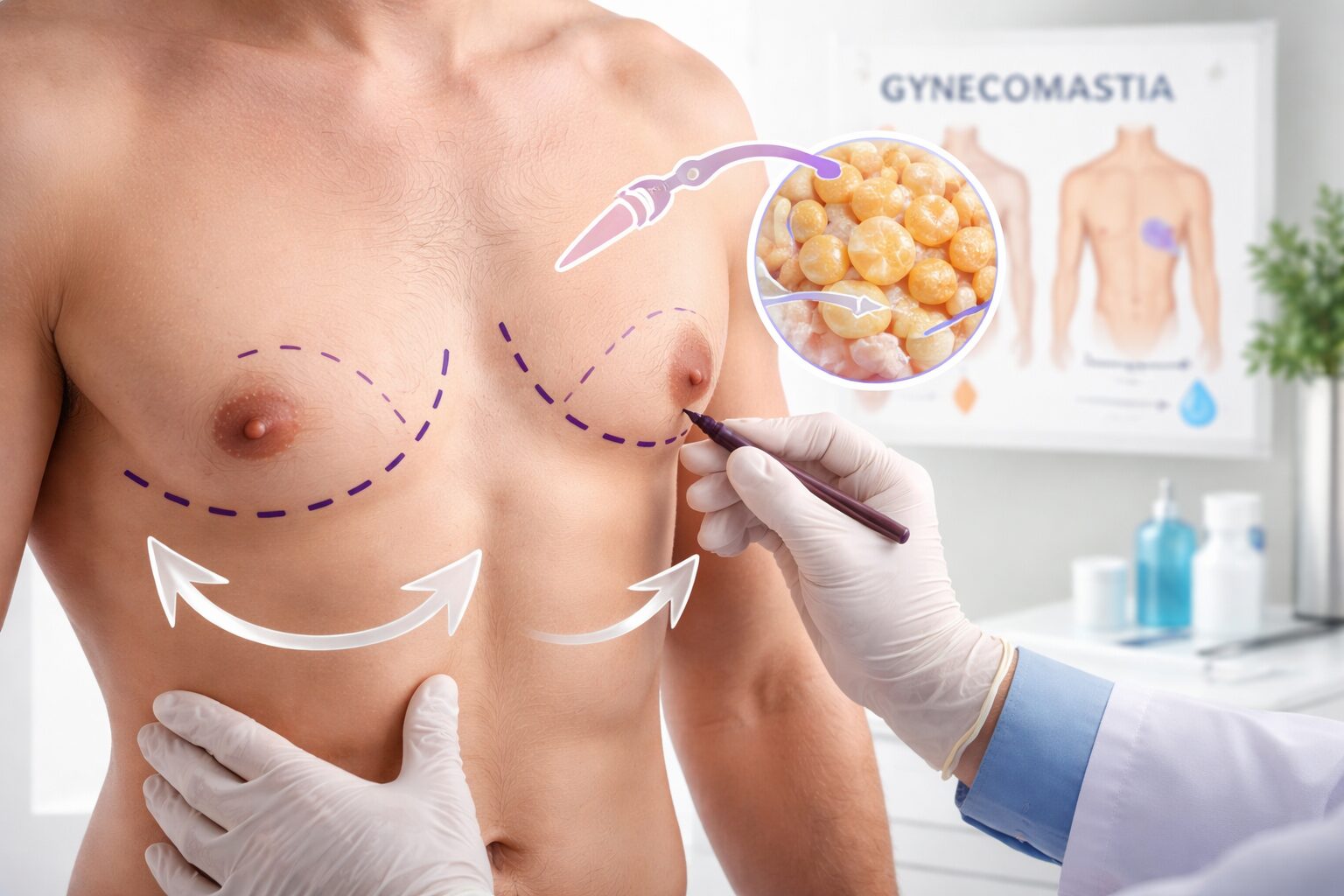 It’s a cosmetic surgical procedure that reduces excess male breast tissue to create a flatter, more masculine chest contour.